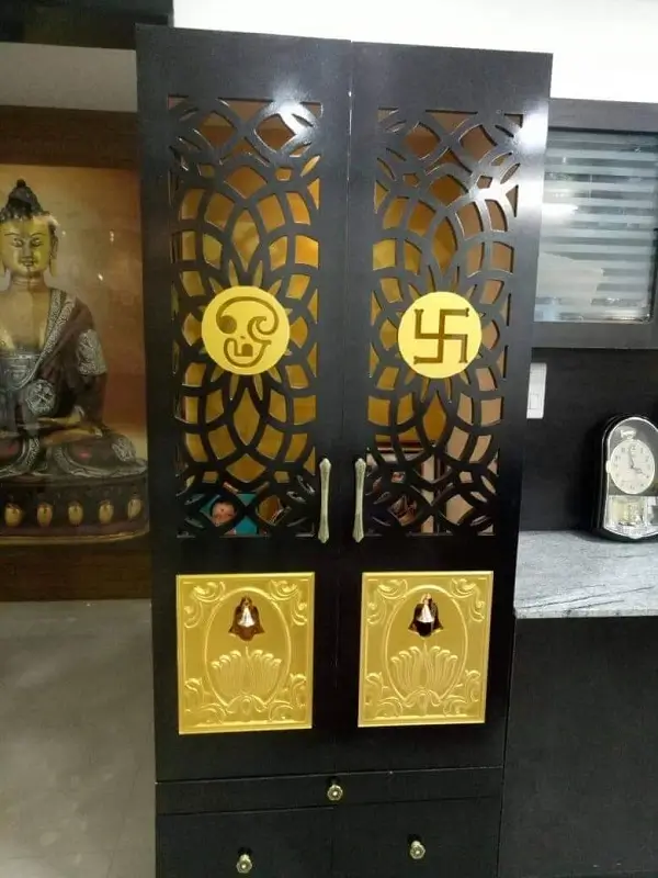 Master bedroom cubboard design work at Chintal, Hyderabad. Black and white decolam as per the customer believe's Astrology.