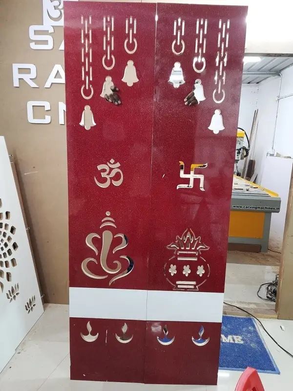 Bed room wardrobe work at Alwal. Gurjan plywood with red and white decolam for white background room.