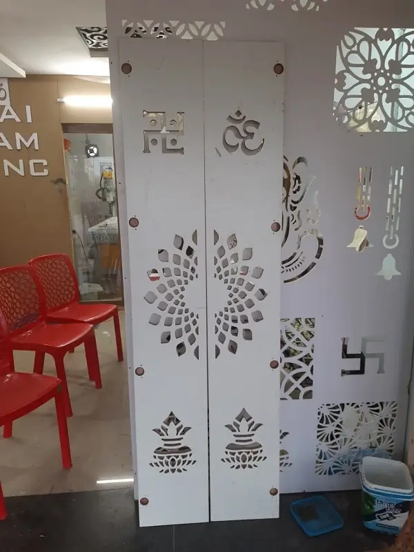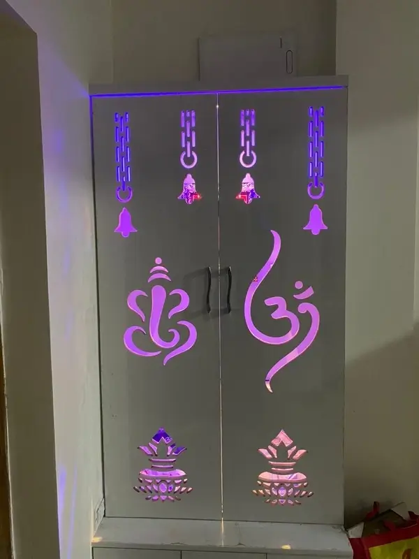 Bedroom wardrobes work at Bollaram, Alwal. White decolam with white and pink rainbow line to match room colours as per customer interested.