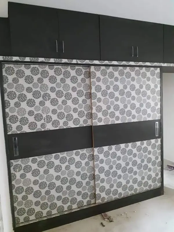 Sliding Wardrobe design at Vinayaka Nagar, ECIL, Hyderabad. Black and Digital decolam with soft close sliding.